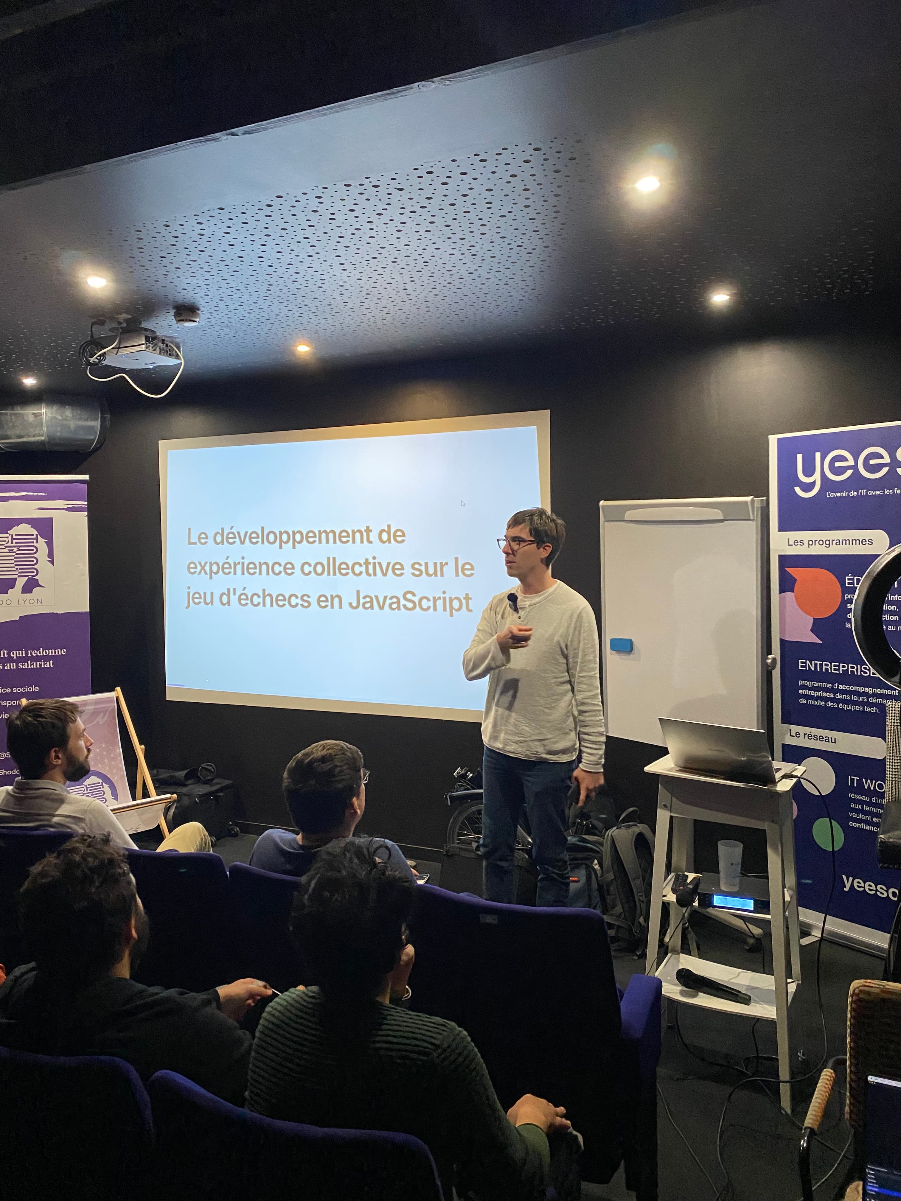 La chaîne Youtube Fouloscopie a organisé une expérience collective sur le jeu d'échecs. J'ai développé l'expérience avec NodeJS, NestJS et VueJS. Je vous propose de revenir sur le développement de cette expérience qui a amené plus de 25.000 personnes avec des centaines de milliers de coups. Quelles étaient les contraintes ? Comment a t-on procédé pour tenir la charge ? je vous propose mon retour d'expérience sur le sujet !